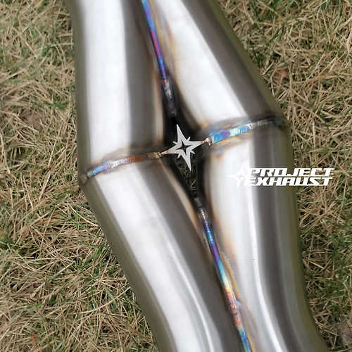 Our 3 inch double xpipe crossover pipe (1.25" Pipe Spacing) is for those looking to design their own exhaust from the ground up. These are perfect for anyone who wants to avoid doubling up on the stamped style X-Pipes, which can be a bottleneck in a free flowing exhaust. Our Double X-Pipe features 1.5mm thick piping in 304 stainless steel that is brushed and then slightly polished. This offers a more finished look over flat brushed. Each pipe is mandrel bent to avoid any restrictions in flow. We cut each pipe using precision CNC machinery and then deburr before fully TIG welding. To keep the pipes from having a burned look around the welded area, we avoid double welding. Instead, we overlap more welds on one pass to increase the strength. Each X-Pipe will have a different oxidation color to the welds due to the chromium content in 304, giving each of our X-Pipes a one of a kind look. Lightweight brackets have also been TIG welded between both pipes to completely eliminate stress on the center weld during shifting.